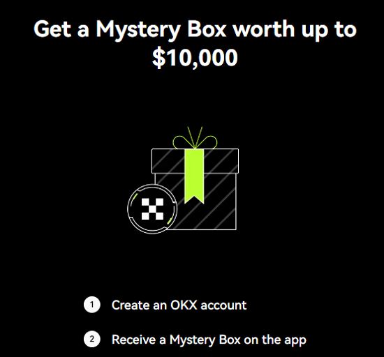 Sign up and log in OKX app to claim a Mystery Box up to $10,000.